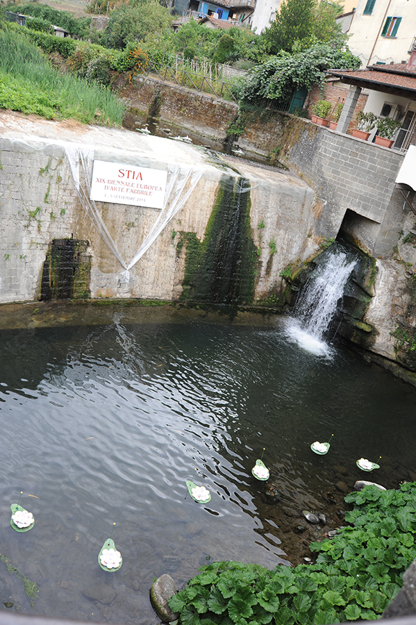 Scenografia di Ninfee sull'Arno a Stia di Luciano Schifano
