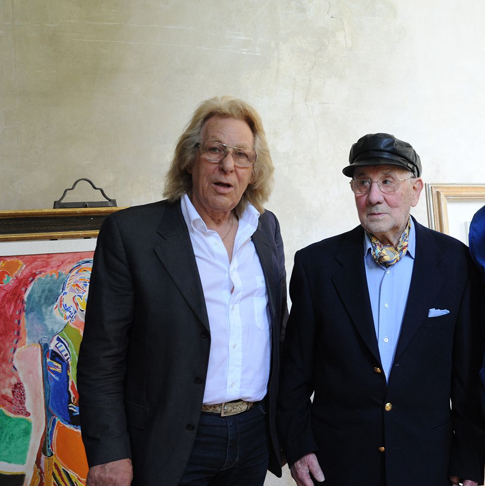 I collaboratori e amici di vecchia data Mauro Landi (sin.) e Sergio Denti (dx.) proprietario della Contemporarte
