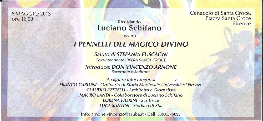 Architetto Claudio Cestelli, Belle Arti di Firenze, in occasione della commemorazione di Luciano Schifano al Cenacolo della Chiesa di Santa Croce, Firenze 6 maggio 2013