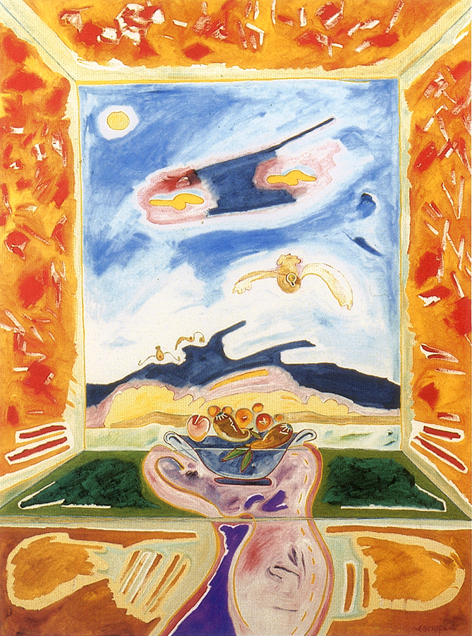 La fruttiera: interno con veduta sull'esterno, 1984, olio su tela, 80x60 cm
