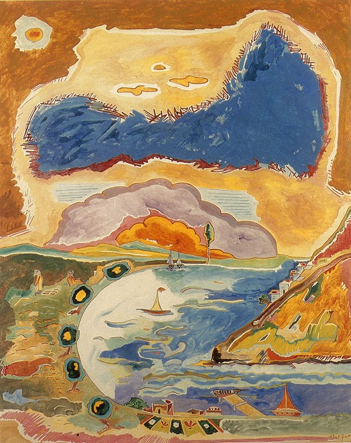 Il golfo, le barche, 1985, olio su tavola, 100x80 cm