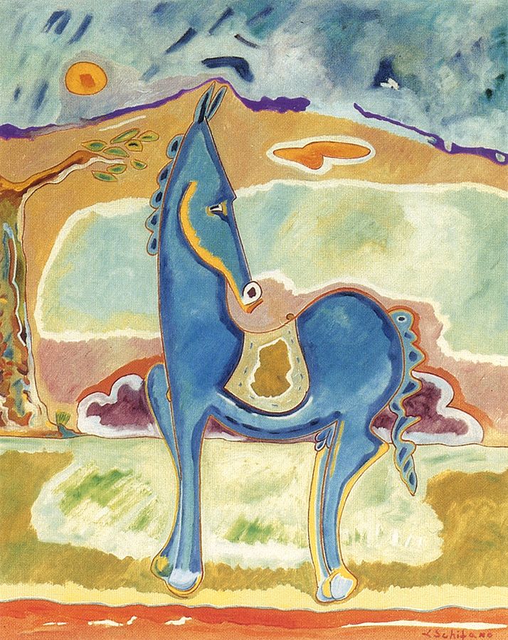 Un cavallo blau turkis, 1985, olio su tavola, 50x40 cm