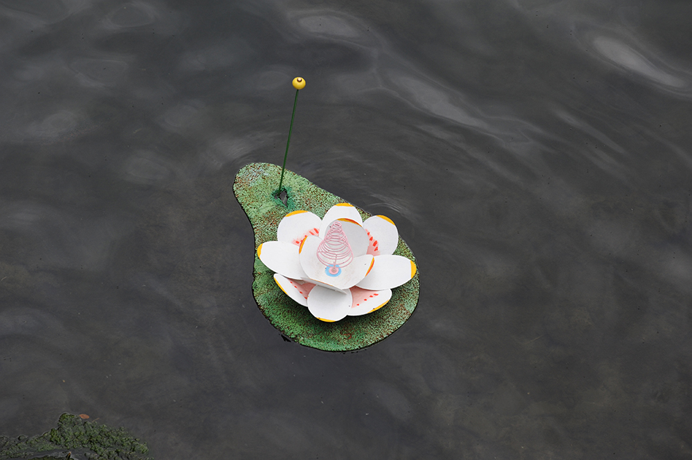 Scenografia di Ninfee sull'Arno a Stia di Luciano Schifano